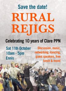 Community activists from across Clare will gather in Ennis on Saturday 11th October for ‘Rural Rejigs’, a day of celebration, discussion, networking, guest speakers, live music, dance and free food.